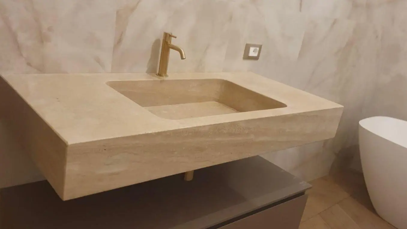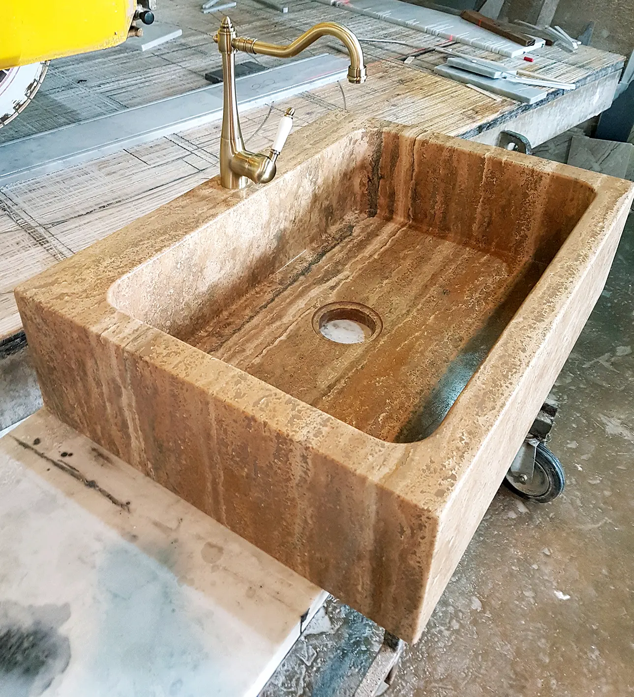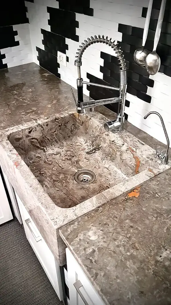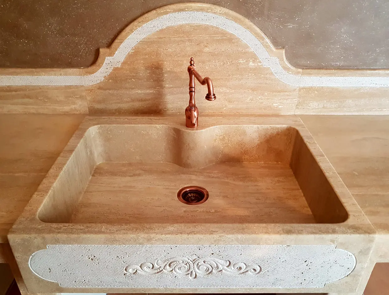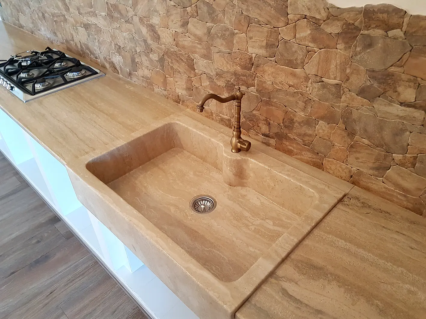 LAVELLO E TOP CUCINA IN TRAVERTINO NOCE